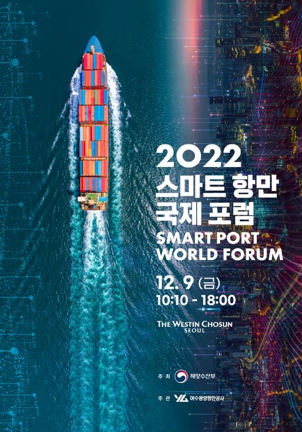 2022 스마트항만 국제포럼 포스터 해양수산부는 여수광양항만공사와 함께 9일 오전 10시10분 서울에서 2022년 스마트항만 국제포럼을 개최한다.
