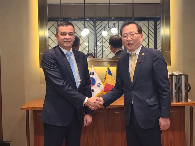 조승환 해수부장관이 23일 서울에서 소린 그린데아누(Sorin Grindeanu) 루마니아 부총리 겸 교통인프라부 장관과 만나 면담했다. 조승환 해양수산부 장관은 23일 오전 7시45분 서울에서 소린 그린데아누(Sorin Grindeanu) 루마니아 부총리 겸 교통인프라부 장관과 면담을 가졌다.