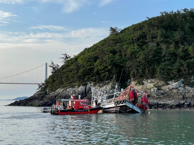 목포해경, 신안군 천사대교 남방 침수선박 긴급출동