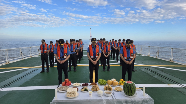 17일 동해해양경찰서에 따르면 민족 대명절 추석을 맞이해 독도 해상경비 중인 3016함의 승조원들은 독도와 동해 해양영토 주권수호를 다짐하며 독도를 지켜온 조상들에게 차례를 지내고 해양주권 수호 의지를 다짐하는 행사를 가졌다고 밝혔다.