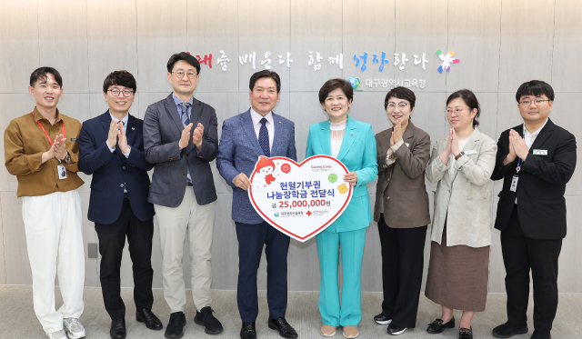 대한적십자사 대구·경북혈액원(원장 지정식)은 지난 2일, 대구시교육청에 '2025년 상반기 헌혈기부권 나눔장학금' 2천500만원을 전달했다고 4일 밝혔다.