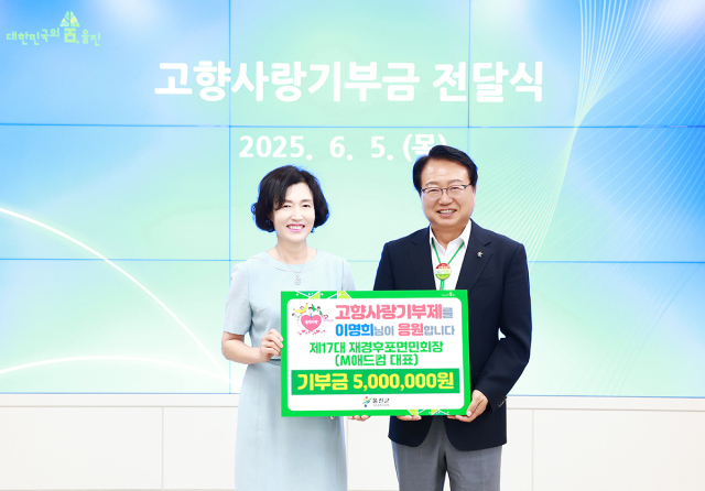 이 회장은 "올해도 고향사랑기부를 통해 울진군 발전을 응원할 수 있어 매우 뜻깊다"며 "앞으로도 고향사랑기부제가 지역에 활기를 불어 넣는 데 도움이 될 수 있도록 꾸준한 나눔을 이어가고 싶다"고 말했다.