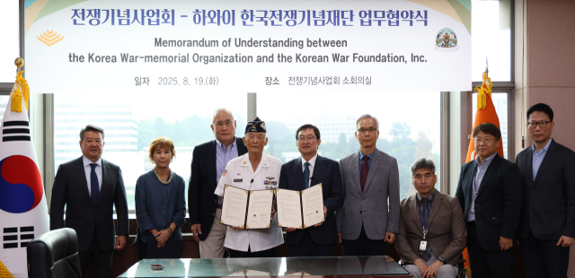 전쟁기념사업회(회장 백승주)는 19일 전쟁기념관에서 하와이 한국전쟁기념재단(Korean War Foundation, Inc. 이하 KWFI)과 업무협약(MOU)을 체결했다.