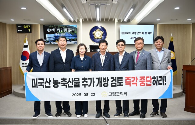 고령군의회는 지난 22일 제307회 임시회 제1차 본회의에서 ‘미국산 농·축산물 추가 개방 검토 중단 촉구 성명서’를 만장일치로 채택했다.