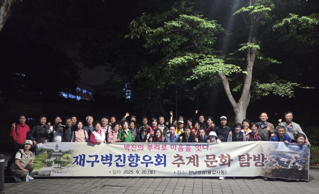 재구 벽진향우회(회장 장태훈)는 20일"벽진의 뿌리로 마음을 잇다"라는 주제로 추계 문화탐방을 했다. 이번 행사에는 회장 장태훈을 비롯해 회원 42명이 함께 참여해 고향의 정을 나누고 선후배 간 유대감을 다졌다.
