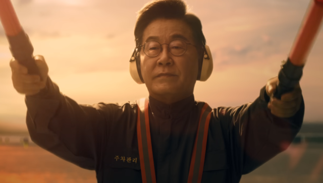 이후 지드래곤은 항공기 'APEC 2025'를 후진 주차하듯 조정한다. 이때 항공기 유도 요원으로 모습을 드러낸 인물이 바로 이재명 대통령이다. '주차 관리'라고 적힌 주차 안내복을 입고 팔을 흔드는 대통령에게 지드래곤이 경례를 보내며, 각국 항공기 사이에 한국 비행기가 자리 잡는 장면으로 이어진다.